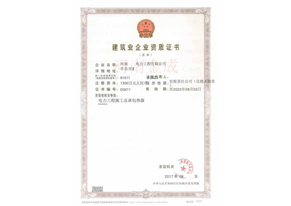 • 建筑業企業資質證書副