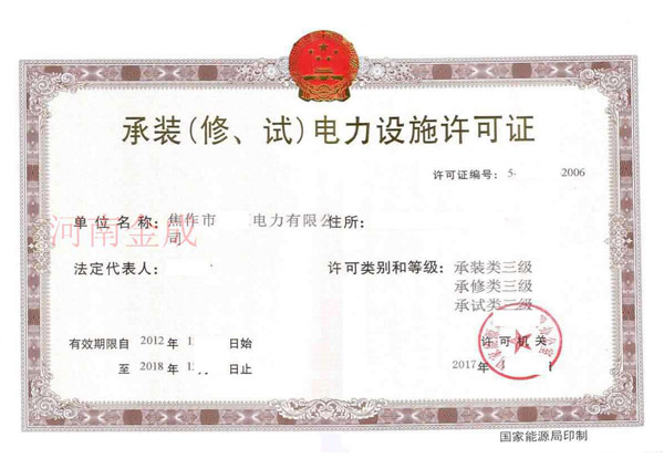 • 承裝(修、試)電力設施許可證